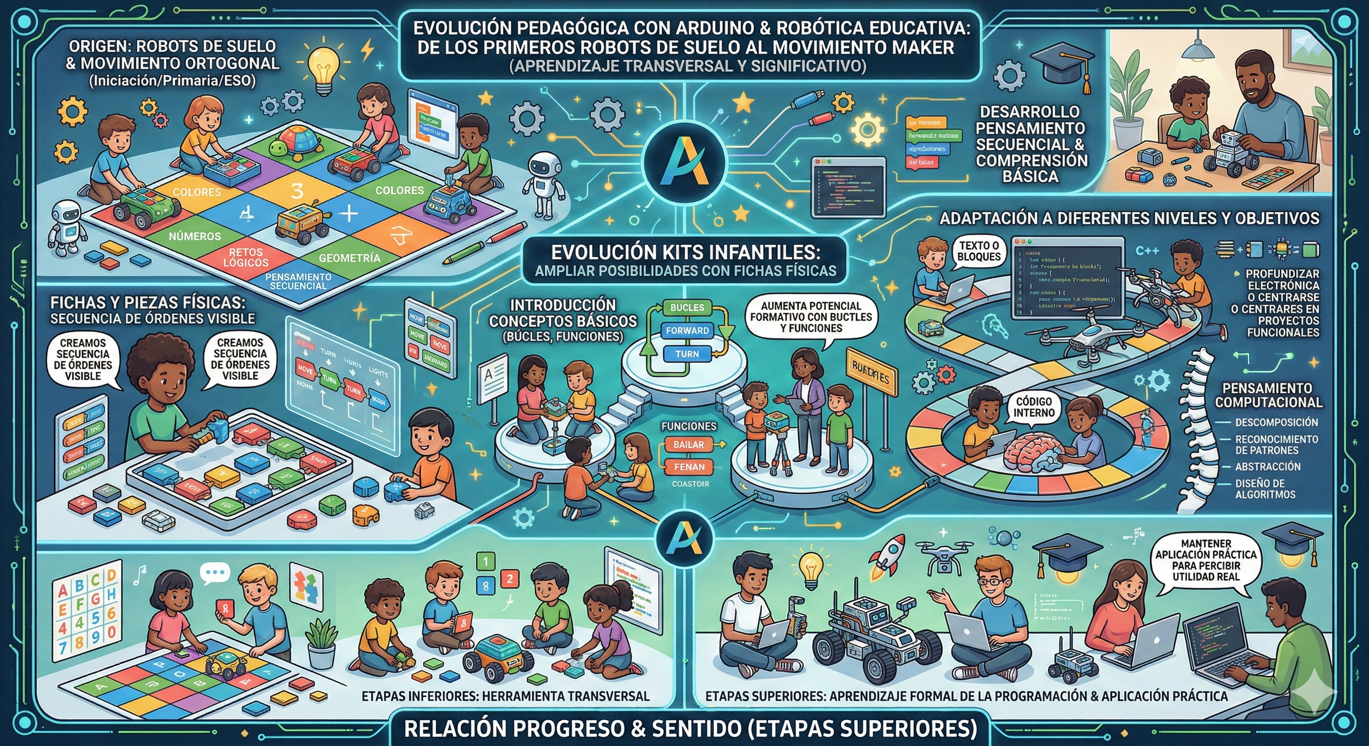 En educación infantil, la robótica suele utilizarse principalmente como herramienta transversal para apoyar cualquier aprendizaje, dando menor peso a la programación como contenido en sí mismo. En kits más avanzados esta proporción se equilibra un poco más, incorporando fundamentos de pensamiento computacional.