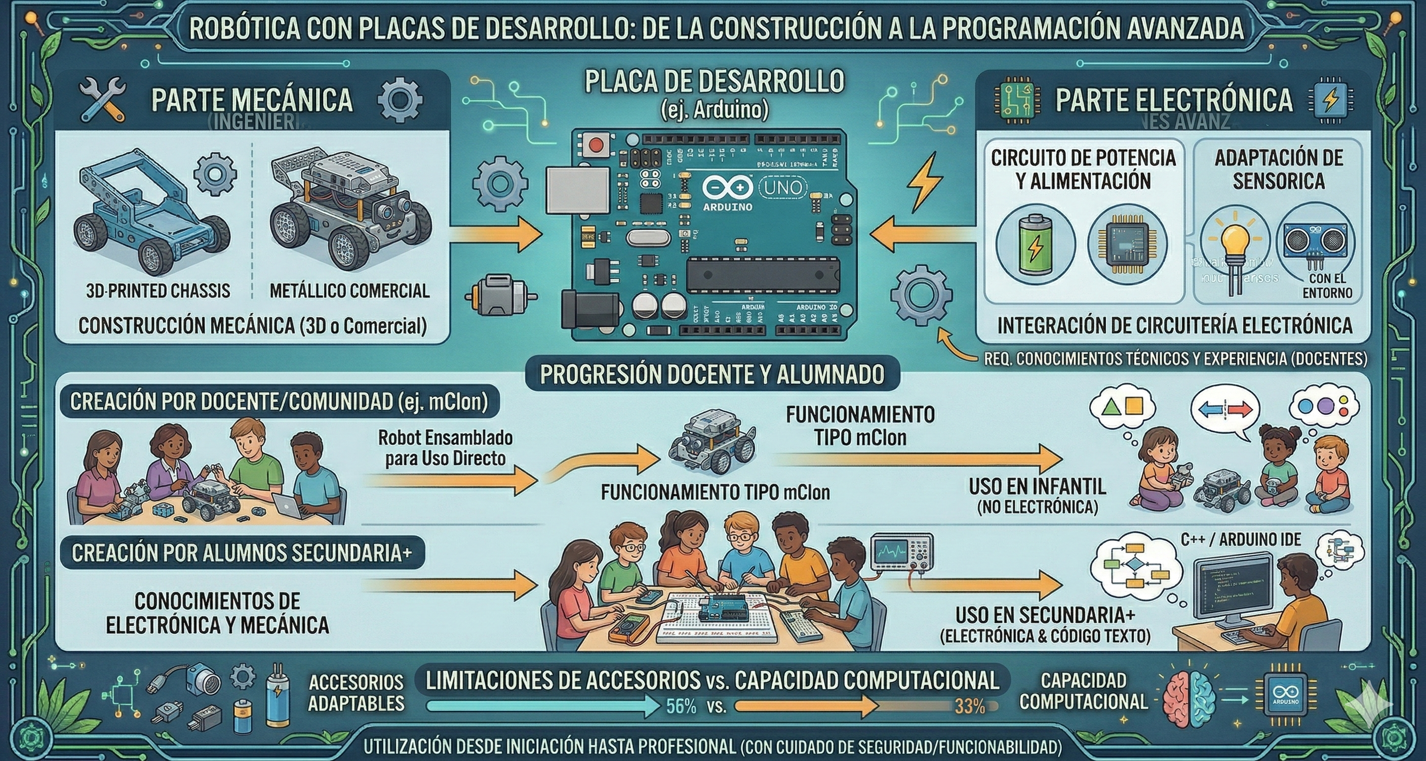 En resumen, las propias placas de desarrollo también permiten un largo recorrido en cuando a dificultad y conceptos avanzados de programación y va a ser más limitante los accesorios que se utilicen que la propia capacidad computacional de las placas, que pueden ser utilizadas desde niveles de iniciación hasta niveles profesionales siempre que se tenga el cuidado de adaptar, por seguridad y funcionabilidad, los componentes a las edades de los niños.